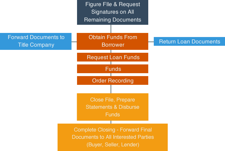 When instructions of all parties to the escrow have been carried out, the closing can take place. All outstanding funds are collected at this time and all costs must be paid. Title to the property, whether real or personal, will then be transferred. All specified documents are recorded or filed at this time.